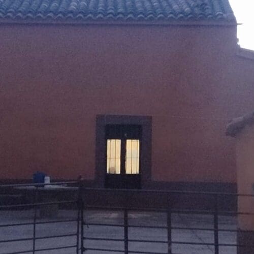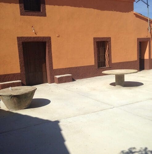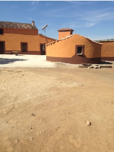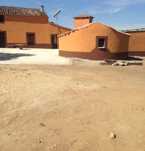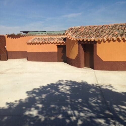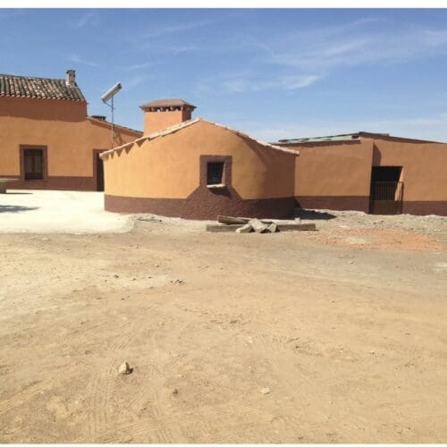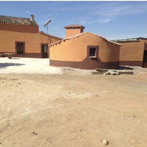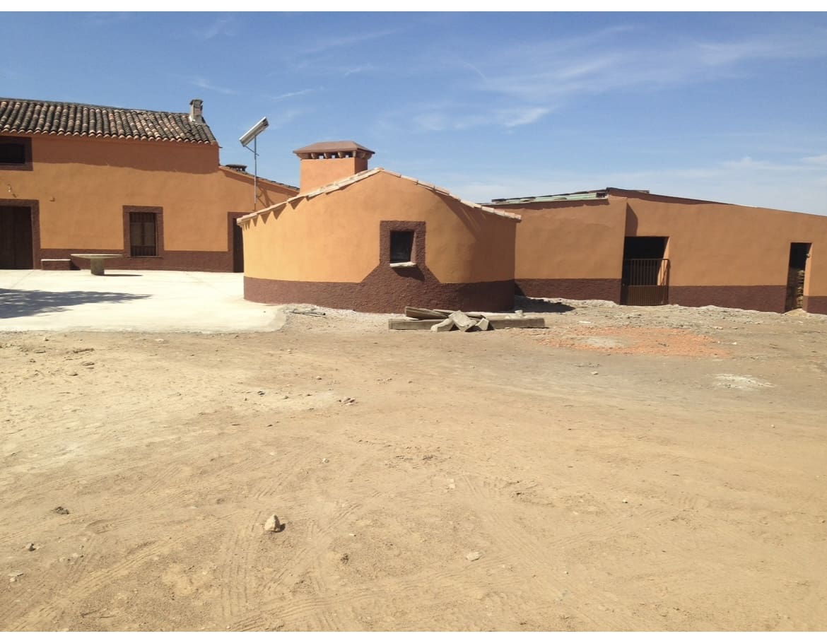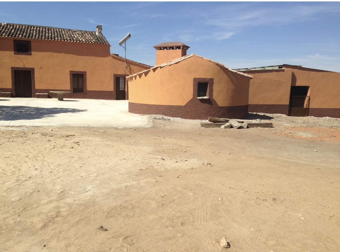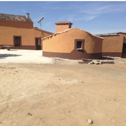 Dentro de la finca se encuentra una casa principal de estilo tradicional extremeño, reformada con materiales rústicos de calidad, además de un cobertizo de piedra y otras construcciones auxiliares que aportan realismo y posibilidades escenográficas.