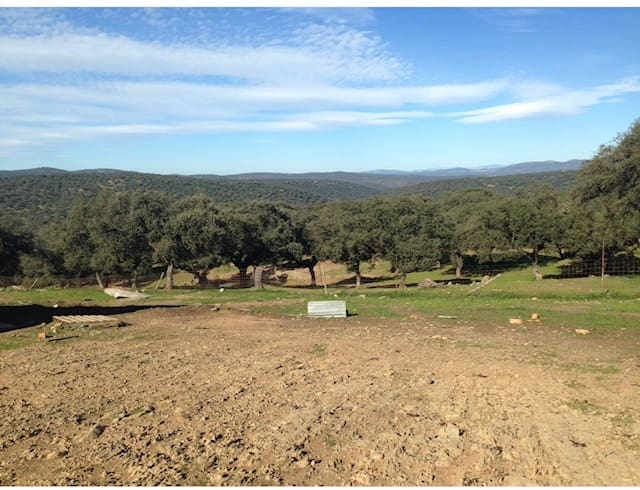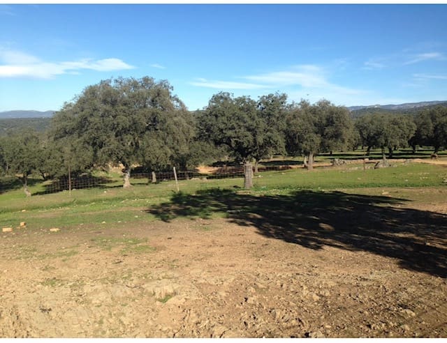 El terreno combina amplias dehesas de encinas centenarias, zonas de monte bajo, charcas naturales y un río que atraviesa la propiedad, ofreciendo una diversidad paisajística única para distintos tipos de escenas.